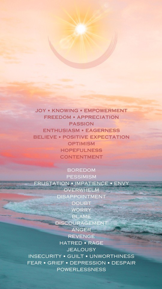 This is the Abraham Hicks emotional guidance scale. This beautiful version was created artistically by my sister-in-love, Chelsea Eilts.